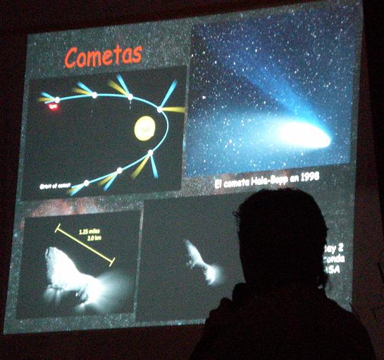 En estos días hemos asistido a una conferencia de Astro-Físico dada por Miguel Ángel Sánchez Conde en el que dijo que él era de Almendralejo pero trabaja en Canaria. Nos contó los distintos planetas que había y las dimensiones en realidad, como por ejemplo la Tierra que es mucho más grandes con respecto a los otros planetas, y también nos dijo el trabajo de él y sus compañeros día a día. Al terminar al conferencia le hicieron preguntas alumnos y profesores del centro.